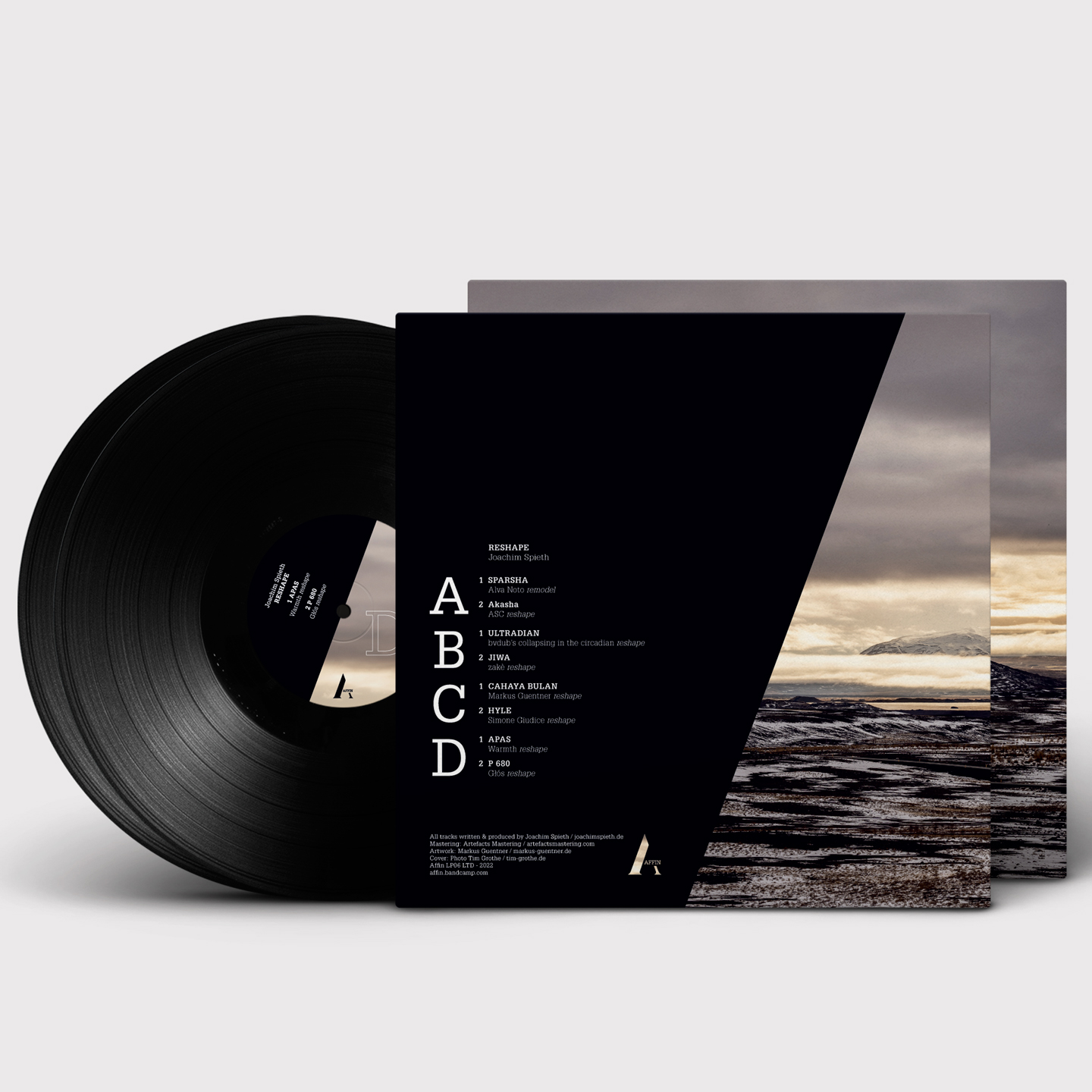 Reshape is released as 2 x 12″ vinyl album and digital formats. All tracks were mastered at Artefacts Mastering Studio in Berlin. The graphic design was realized by Markus Guentner.